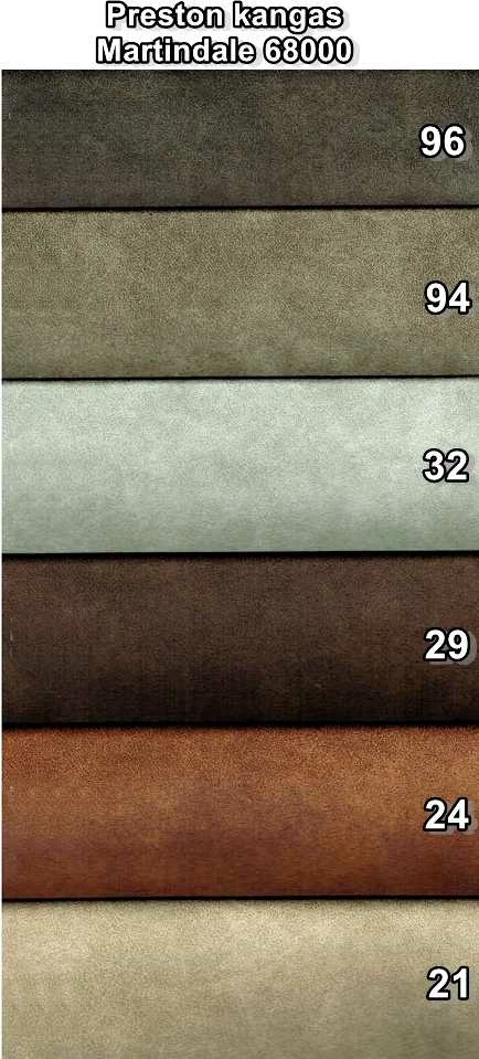 - Preston verhoilukankaat: Erittäin pehmeä kangas, jonka pinta ja ihotuntuma on sileä ja nahkamainen. Myös ulkonäkö muistuttaa nahkaa. Todella kestävä ja helppohoitoinen ja näyttävä kangas.